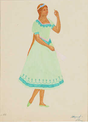 Лот из двух эскизов костюмов (на одном листе, на оборотной стороне эскиз костюма)