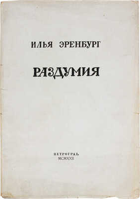 Эренбург И.Г. Раздумия / Марка издательства, обложка и фронтиспис работы А.И. Божерянова. Пг.: Неопалимая купина, 1922.