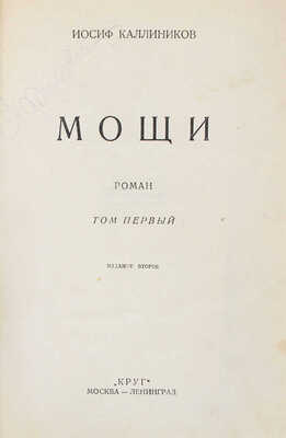 Каллиников И. Мощи. Роман. 2-е изд. [В 3 т.]. Т. 1–3. М.; Л.: Круг, [1926].