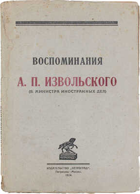 Извольский А.П. Воспоминания / Пер. с англ. А.Ф. Сперанского. Пг.; М.: Изд-во «Петроград», 1924.
