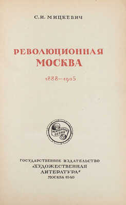 Мицкевич С.И. Революционная Москва. 1888–1905 / Переплет и титул Г. Мануйлова. М.: Гослитиздат, 1940.