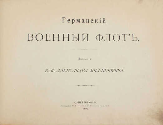 Германский военный флот / Изд. в. к. Александра Михайловича. СПб.: Тип. Ю. Вольнер и К⁰, 1894.