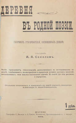 Соколов А.А. Деревня в родной поэзии. Сборник стихотворений, посвященных деревне. Более трехсот стихотворений, расположенных в систематическом порядке, снабженных иллюстрациями и портретами лучших русских писателей, посвящавших свои мысли и вдохновение деревне. М., 1901.