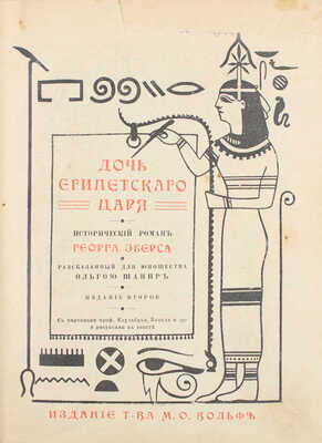 4. Эберс Г. Дочь египетского царя. Историч. роман Эберса, рассказанный для юношества О. Шапир; с картинами проф. Каульбаха, Зихеля и др. рис. в тексте. 2-е изд. СПб.: Изд. Т-ва М.О. Вольф, 1912.