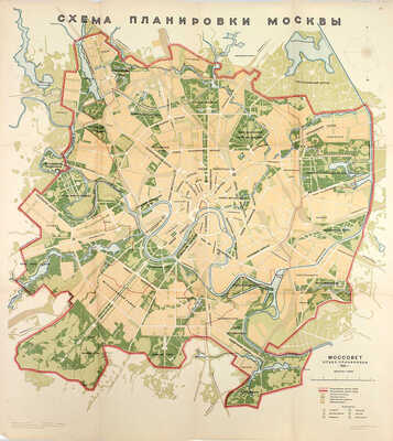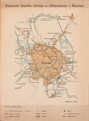 В издательском ледериновом переплете с иллюстрацией на передней крышке переплета. Незначительные потертости и загрязнения переплета. Ляссе. Иллюстрированные форзацы. На оборотной стороне свободного листа форзаца и титульном листе владельческие подписи чернилами. В конце книги вклеена издательская папка-вкладыш с клапанами, в которую вложен отдельный лист схемы («Схема планировки Москвы»). Нет одного отдельного листа схемы («Схема основных магистралей, обводнения и озеленения г. Москвы»). Сохранность очень хорошая
