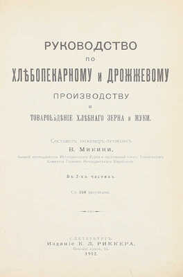 Микини В. Руководство по хлебопекарному и дрожжевому производству и товароведение хлебного зерна и муки. В 2-х частях. Ч. 1—2. СПб.: Изд. К.Л. Риккера, 1912.