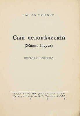 Людвиг Э. Сын человеческий. (Жизнь Иисуса) / Пер. с нем. Рига: Книга для всех, 1929.