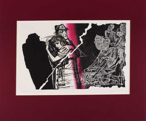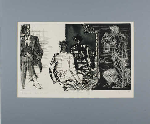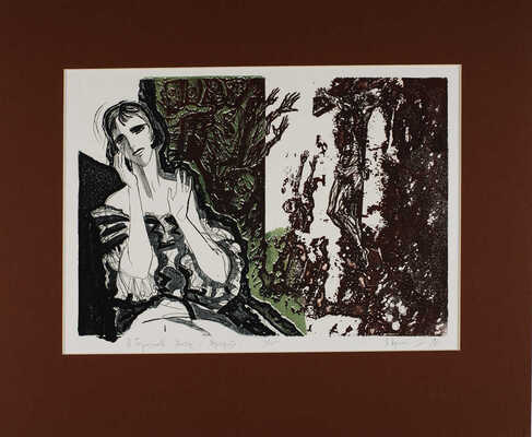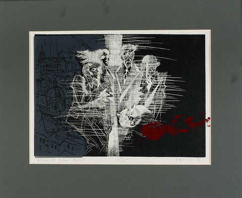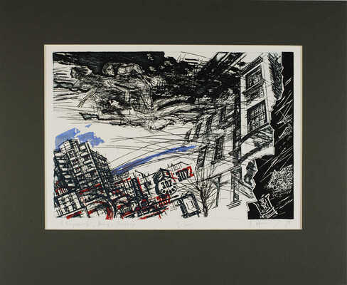 Бумага, цветной офорт Экземпляр 19 из 25 Размер 41 * 56 см Справа внизу авторская подпись и дата 9. Полет 1989 г. Бумага, цветной офорт