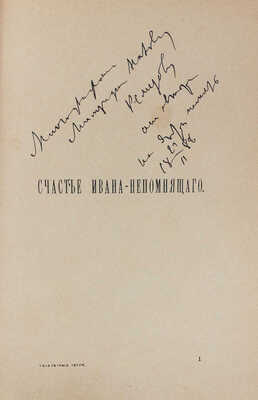 [Немирович-Данченко В., автограф?]. Немирович-Данченко В. Незаметные герои. СПб.: Тип. М.М. Стасюлевича, 1889.