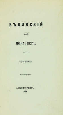 Лот из двух предметов: Белинский как моралист. Ч. 1. СПб., 1862. Кабинетное фото [Шумахер?].