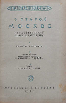 В старой Москве. Как хозяйничали купцы и фабриканты. Материалы и документы. М., 1939.
