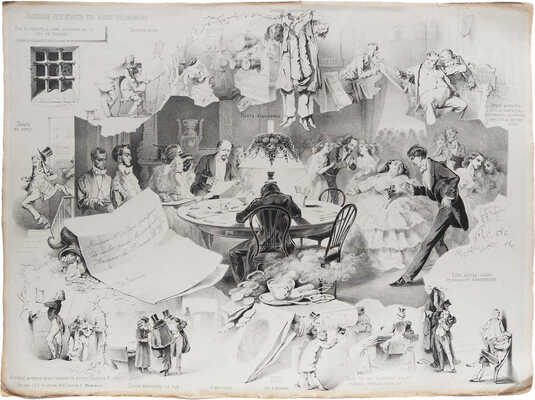 Лот из двух листов из альбома карикатур «Знакомые» (СПб.: Издание А. Беггрова, 1857−1858). Карикатуры Степанова рисованы на камне П. Семечкиным: