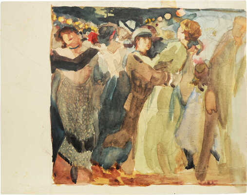 Бумага, наклеенная на картон, акварель, графитный карандаш