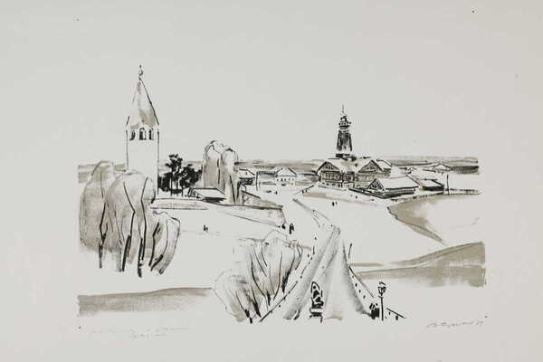 Судаков Владимир Михайлович (1912 - 1994) после окончания средней школы в 1930 г. поступил на рабфак при АХ. Трудные жизненные обстоятельства вынудили его через несколько месяцев покинуть рабфак, и он поступил подсобным рабочим сначала в художественные мастерские Политпросветцентра, затем в 1931 г. в ГРМ. В это время он познакомился с художниками А. Скалоном, А. Рыловым, оказавшими на него большое влияние. Вечерами посещал класс набросков при АХ. Занимался в студии Дома искусств, где акварель преподавал Н.А. Тырса, рисунок - К.И. Рудаков. В 1933 г. поступил в Ленинградский художественный техникум, который окончил через пять лет. Член СХ СССР