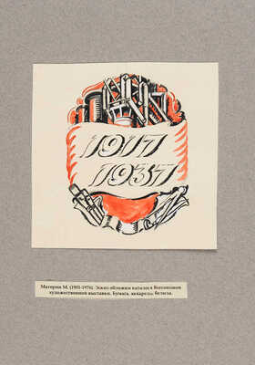 Эскиз обложки к каталогу «Индустрия социализма. Всесоюзная художественная выставка. 1917-1937» и пробный оттиск обложки