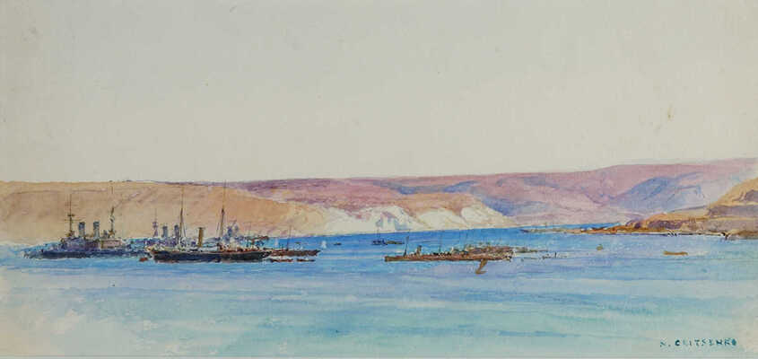 Гриценко Николай Николаевич (1856-1900) - русский художник-маринист и пейзажист. Окончил Кронштадтское техническое училище морского ведомства, после чего плавал на военных судах «Крейсер», «Владимир Мономах» и «Стрелок». В 1885 г. поступил вольноприходящим учеником в ИАХ и стал обучаться под руководством профессора Л.Ф. Лагорио. В 1887 г. командирован за казенный счет в Париж к профессору А.П. Боголюбову, одновременно посещал мастерскую Ф. Кормона. Принимал участие в путешествии на Восток цесаревича Николая в 1890-1891 гг., присоединившись к свите наследника в Триесте. В 1894 г. оставил службу на флоте и был назначен художником Морского министерства. Написал много картин и акварелей, изображающих виды моря, гаваней и различных местностей Европейской России и Сибири. Образцом работ Гриценко может служить картина «Ночь в Тихом океане», находящаяся в ГРМ