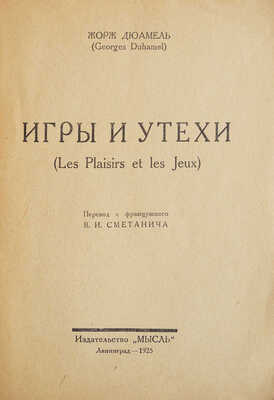 Дюамель Ж. Игры и утехи. Л.: Мысль, 1925.