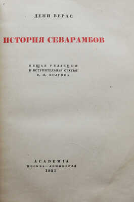 Верас Д. История севарамбов / Общ. ред. и вступ. ст. В.П. Волгина. М.; Л.: Academia, 1937.