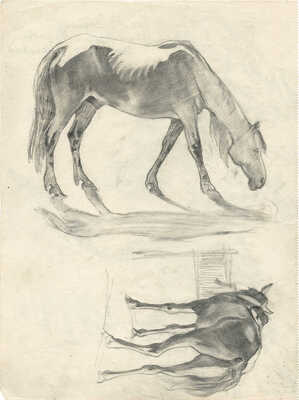 Этюд с лошадьми (на оборотной стороне эскиз деревьев)