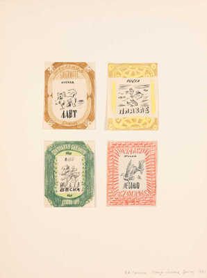 Четыре эскиза обложек серии «Школьная библиотека» издательства «Детгиз»: