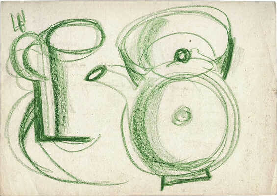 На оборотной стороне набросок композиции с книгой и монограмма автора
