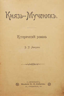 Лебедев В.П. Князь-мученик. Исторический роман В.П. Лебедева. СПб.: Издание П.П. Сойкина, 1900.