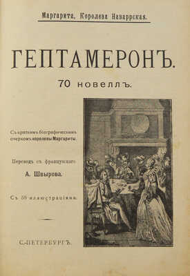 Наваррская М. Гептамерон. 70 новелл. С кратким биографическим очерком королевы Маргариты / Пер. с фр. А. Швырова. СПб.: Типография Первой СПб. трудовой артели, [1908].
