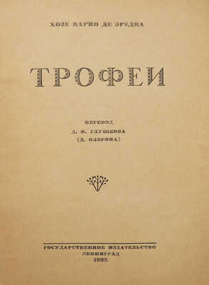 Эредиа Ж. М. Трофеи / Пер. Д.И. Глушкова (Д. Олерона); [вступ. ст. Б. Лившица, рис. В. Гельмерсена]. Л.: Государственное издательство, 1925.
