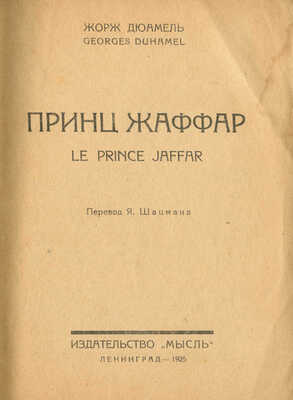 Дюамель Ж. Принц Жаффар / Пер. Я. Шацмана. Л.: Мысль, 1925.