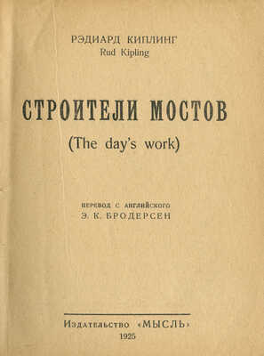 Киплинг. Строители мостов. (The day's work). / Пер. с англ. Э.К. Бродерсен. Л.: Мысль, 1925.