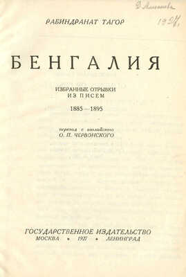 Тагор Р. Бенгалия. Избранные отрывки из писем. 1885-1895 / Пер. с англ. О.П. Черновского. М.; Л.: Государственное издательство, 1927.