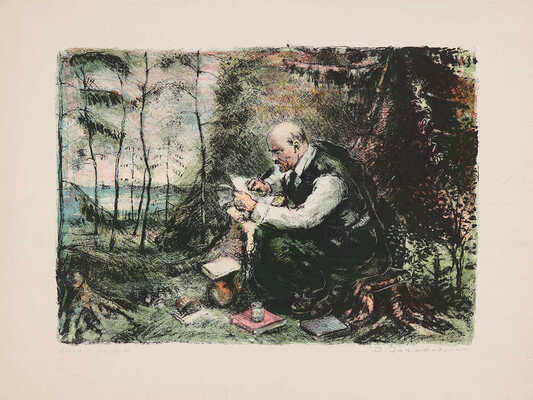 Слева внизу литографированное авторское название. Справа внизу литографированная подпись автора