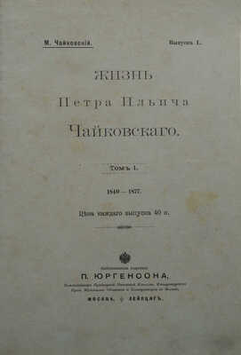 Чайковский М.И. Жизнь Петра Ильича Чайковского... В 3 т. Т. 1-3. М.; Лейпциг: П. Юргенсон, [1900-1902].