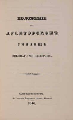 Положение об Аудиторском училище Военного министерства. СПб.: В типографии Департамента военных поселений, 1846.