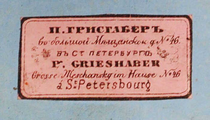 На обороте рамы этикетка «П. Грисгаберъ, Большая Мещанская, д. 46, в С.-Петербурге»
