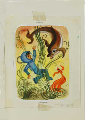Лот из двух иллюстраций к рассказу Д. Цончева «Маленький водолаз». Издательство: М.: Детская литература, 1972