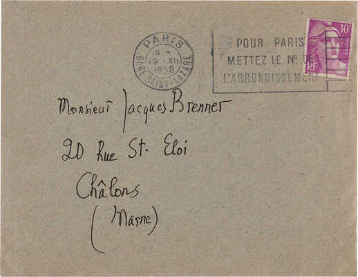 Ремизов А.М. Письмо на франц. яз. «17 декабря 1948».