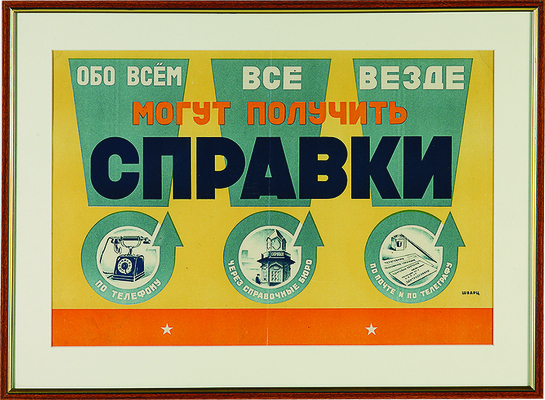 Обо всем везде могут получить справки. [Плакат]. Художник Шварц. [Начало 1930-х].