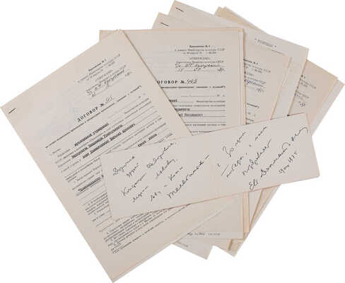 Договоры на муз. и лит. пр-я на им. поэтов Н.Н. Добронравова, Е.А. Долматовского, В.Г. Федоровича с их подписями. 1981.