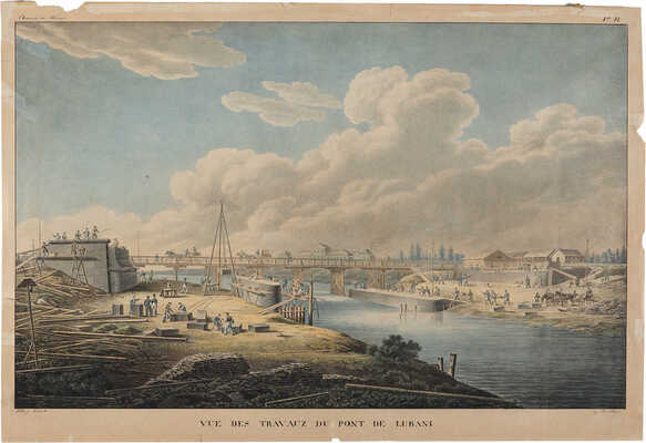 Вид на работы по строительству моста в городе Любань. СПб.: А. Плюшар, 1823.