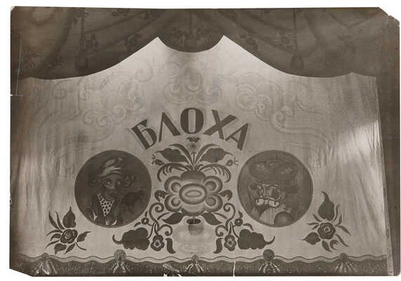 Фотография занавеса по эскизу работы Б.М. Кустодиева для постановки пьесы «Блоха» Е.И. Замятина. 1920-е гг.