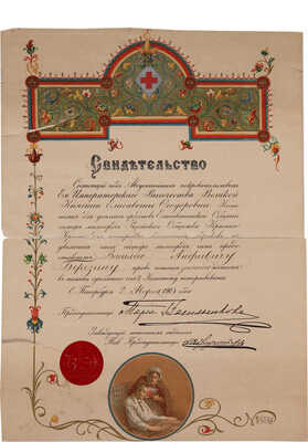 Свидетельство Комитета для усиления средств Елисав. Общ. сестер милосердия Рос. общ. Красного Креста. 2 августа 1903 г.
