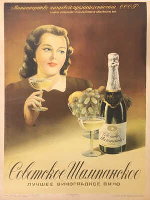 Советское шампанское - лучшее виноградное вино. [Плакат]. М.: Союзпищепромреклама, 1953. Художник Н. Мартынов.