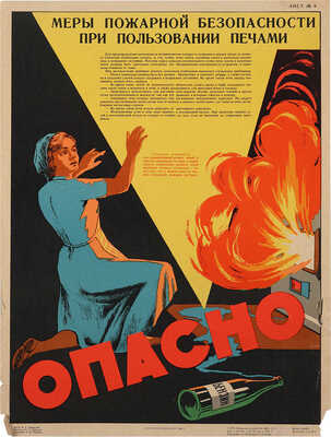 Меры пожарной безопасности при пользовании печами. [Плакат]. Гостоптехиздат, 1962.