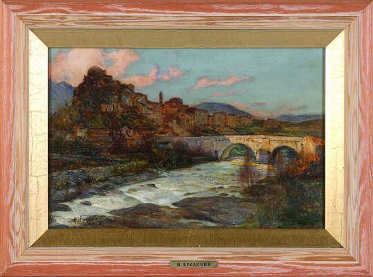 Работа исполнена в Италии, в чем убеждают вид и стилистика произведения, а также то, что в 1909-1910 гг. как пенсионер ИАХ И.И. Бродский побывал в Европе и Малой Азии. В 1911 г. он посетил Капри, где жил у Максима Горького, в 1911 г. экспонировал свои работы на выставке "Мира искусства" и Всемирной выставке в Риме