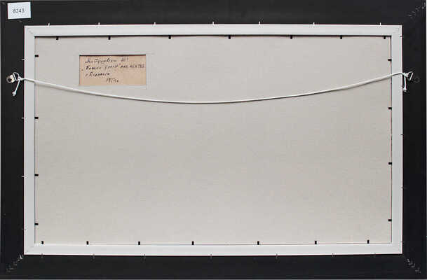 На оборотной стороне надпись: «Матушевский Ю.В./ Банька у реки/ раз. 46 × 80,5/ г. Подольск/ 1974 г.»