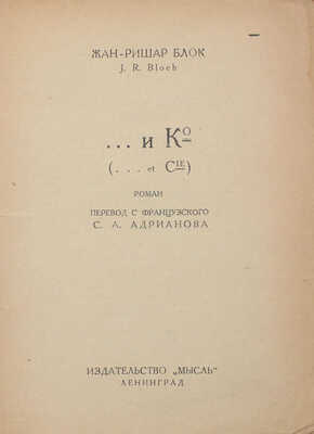 Блок Ж.Р. ... и К°. Роман / Пер. с фр. С.А. Адрианова. Л.: Мысль, 1926.