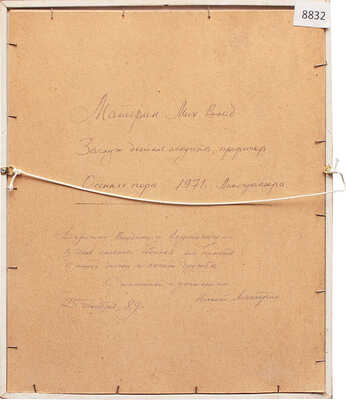 На оборотной стороне подтверждение семьи художника и дарственная надпись
