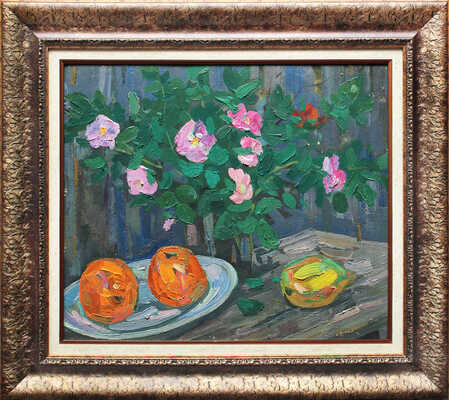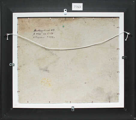 На оборотной стороне надпись: «Матушевский Ю.В. / В саду / раз. 42 × 50 / г. Подольск, 1975 г.»