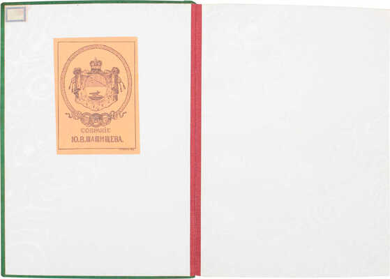 В подносном муаровом переплете с золотым тиснением по передней крышке. Небольшие загрязнения и потертости переплета. Тройной золотой обрез. Форзацы оклеены бумагой «под муар». На форзаце бумажный экслибрис «Собрание Ю.В. Татищева» и бумажная наклейка. Сохранность очень хорошая. Редкость!